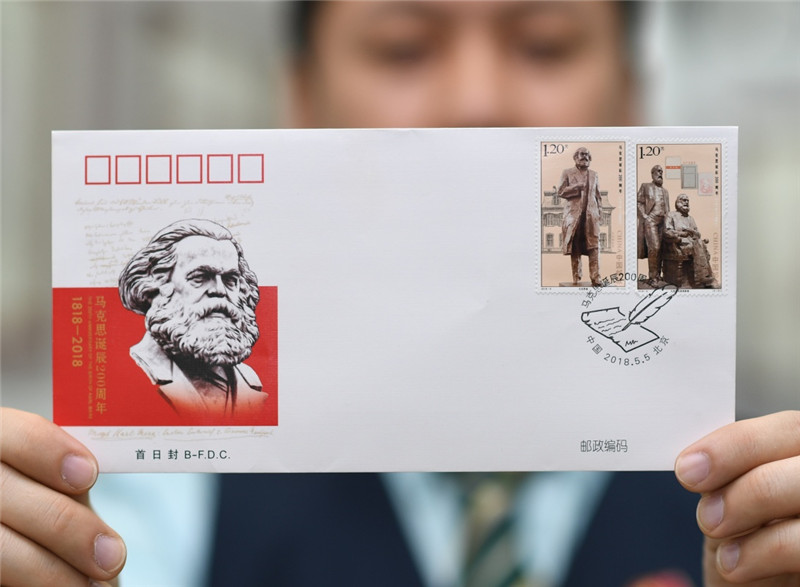 当日,中国邮政发行《马克思诞辰200周年》纪念邮票1套2枚,邮票图案名称分别为:马克思像、马克思与恩格斯像,全套面值2.40元。