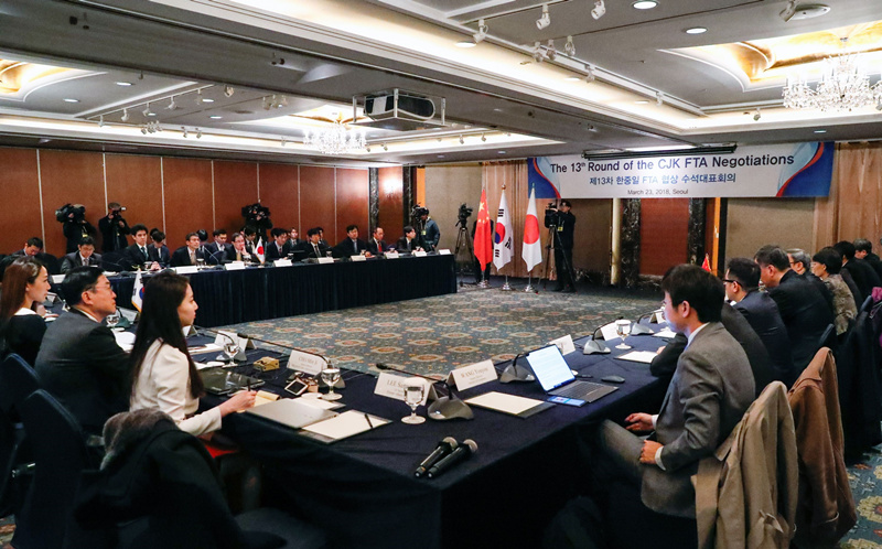 3月23日,中日韩自贸区第十三轮谈判首席谈判代表会议在韩国首尔举行。