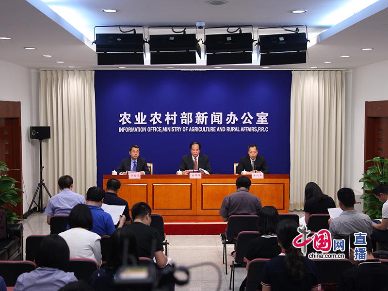 农业农村部办公厅副主任宁启文主持发布会。中国网 郭天虎 摄