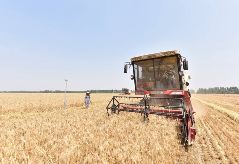 6月15日,村民驾驶收割机在定州市东留春乡北邵村收割黑小麦。