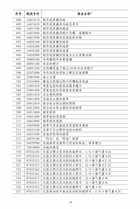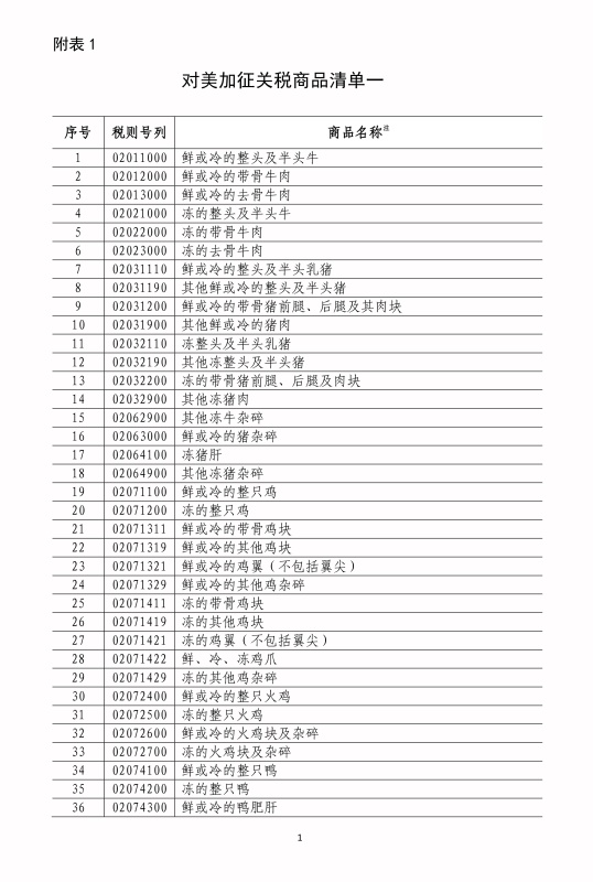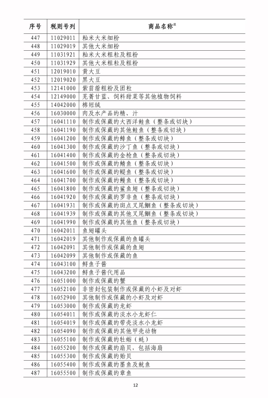 一、对农产品、汽车、水产品等545项商品,自2018年7月6日起实施加征关税,具体商品范围见附表1。
