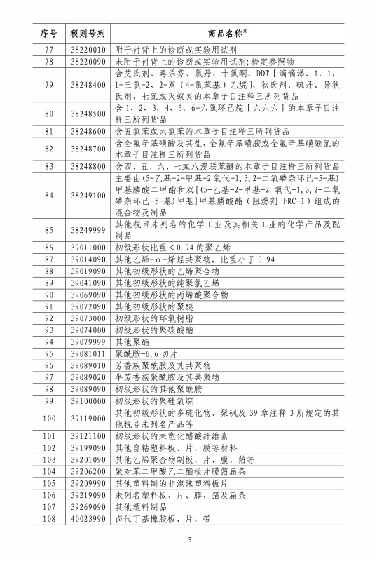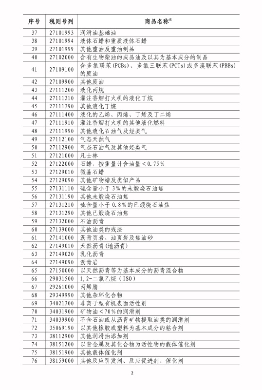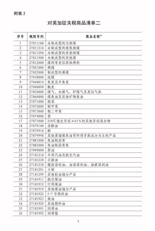 二、对化工品、医疗设备、能源产品等114项商品,加征关税实施时间另行公告,具体商品范围见附表2。