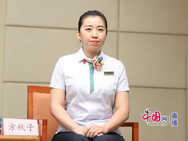 北京公路发展集团收费员方秋子:各位媒体朋友大家上午好,我叫方秋子,今年31岁,是北京市首都公路发展集团有限公司京沈分公司的一名收费员,也是“秋子服务”品牌带头人。12年前,我怀着对未来美好的憧憬来到首发集团成为一名收费员,也成为了一名交通人。交通运输是城市发展的大动脉,它与首都市民的生活、工作息息相关。大家都应该走过高速公路,你们有谁计算过通过一个收费窗口需要多长时间呢?我告诉大家,通过我的收费窗口只需要2.5秒。大家选择高速公路通行要的就是节省时间、快速通行,所以哪怕提升0.1秒的速度,我都会付出100%的努力。正是因为我付出了这些努力,我也练就了“判别车型一眼准”、“打票收费一手快”、“唱收唱付一口清”、“点钞识钞一指明”的娴熟技能,大大缩短了高速公路收费站的时间,也提高了路网的通行效率。同时为了做好微笑服务,我私底下也会练习微笑,通过练习,现在已经成为我们首都高速公路服务窗口的“首都表情”了。谢谢大家。