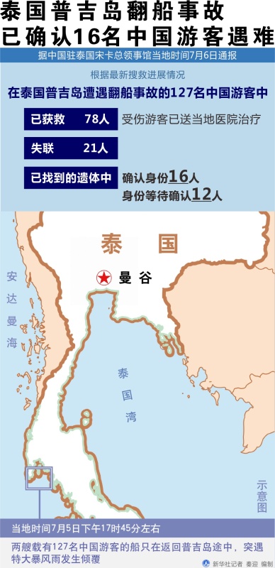 图表:泰国普吉岛翻船事故已确认16名中国游客遇难