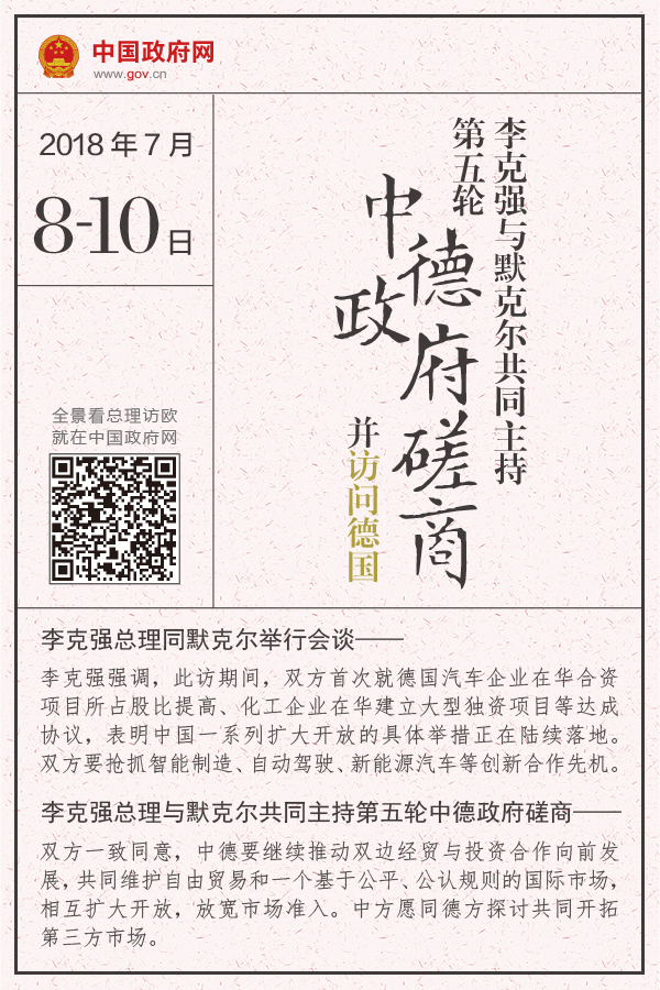 日历 | 李克强与默克尔共同主持第五轮中德政府磋商并访问德国