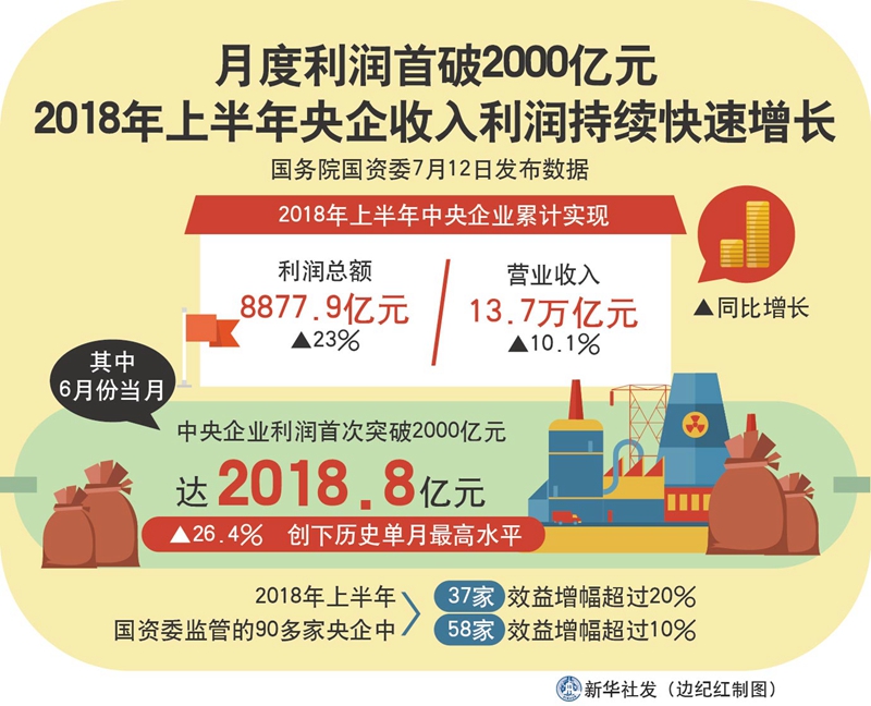 图表:月度利润首破2000亿元 2018年上半年央企收入利润持续快速增长