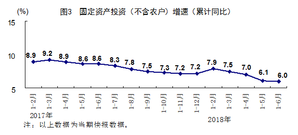 上半年,全国固定资产投资(不含农户)297316亿元,同比增长6.0%,增速比一季度回落1.5个百分点。其中,民间投资184539亿元,同比增长8.4%,比上年同期加快1.2个百分点。分产业看,第一产业投资增长13.5%;第二产业投资增长3.8%,其中制造业投资增长6.8%,增速连续三个月回升,比一季度加快3.0个百分点,比上年同期加快1.3个百分点;第三产业投资增长6.8%,其中基础设施投资增长7.3%。高技术制造业投资同比增长13.1%,增速比全部投资快7.1个百分点。上半年,全国房地产开发投资55531亿元,同比增长9.7%。全国商品房销售面积77143万平方米,增长3.3%。全国商品房销售额66945亿元,增长13.2%。