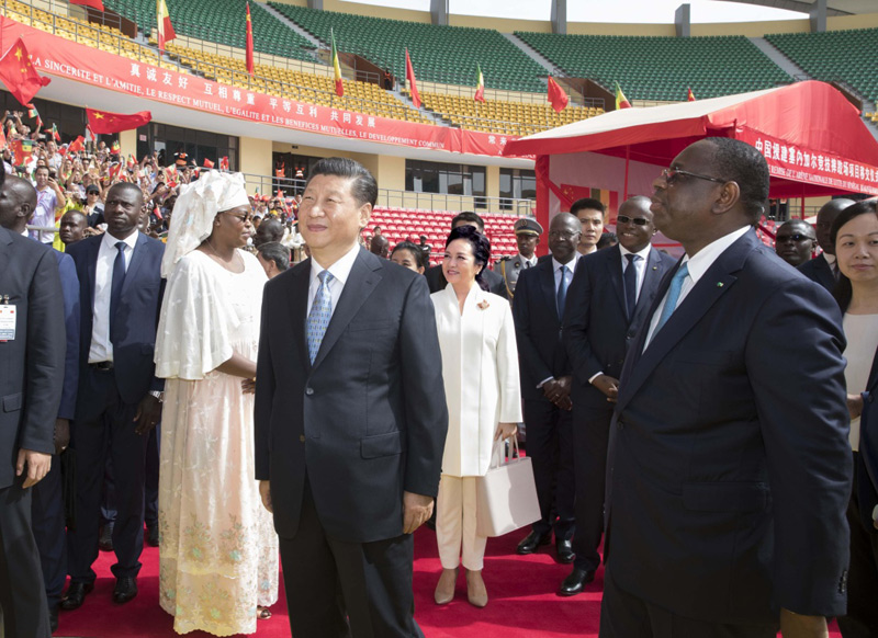 习近平同塞内加尔总统萨勒共同出席塞内加尔竞技摔跤场项目移交仪式