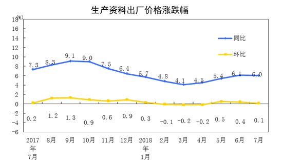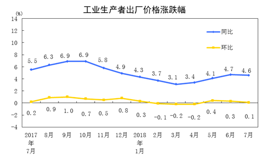 2018年7月份工业生产者出厂价格同比上涨4.6%