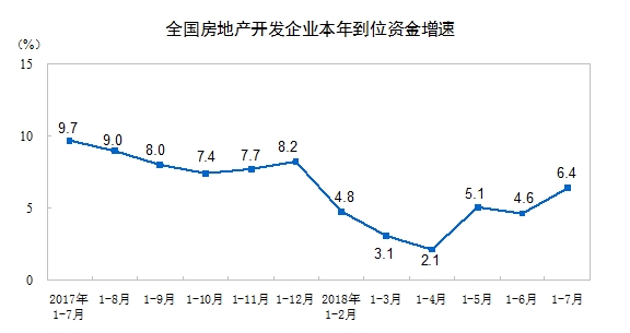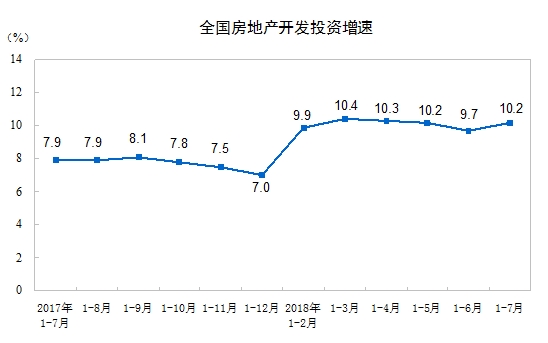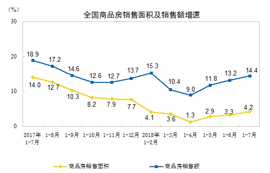 2018年1-7月份全国房地产开发投资和销售情况