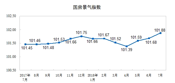 7月份,房地产开发景气指数(简称“国房景气指数”)为101.88,比6月份提高0.20点。