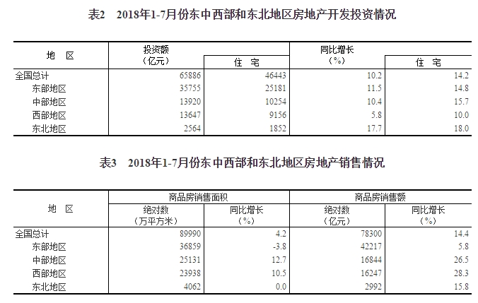 1-7月份,东部地区商品房销售面积36859万平方米,同比下降3.8%,降幅比1-6月份收窄1.6个百分点;销售额42217亿元,增长5.8%,增速提高1.9个百分点。中部地区商品房销售面积25131万平方米,增长12.7%,增速回落0.1个百分点;销售额16844亿元,增长26.5%,增速回落0.5个百分点。西部地区商品房销售面积23938万平方米,增长10.5%,增速提高0.5个百分点;销售额16247亿元,增长28.3%,增速提高0.1个百分点。东北地区商品房销售面积4062万平方米,同比持平,1-6月份为下降1.1%;销售额2992亿元,增长15.8%,增速提高1.7个百分点。