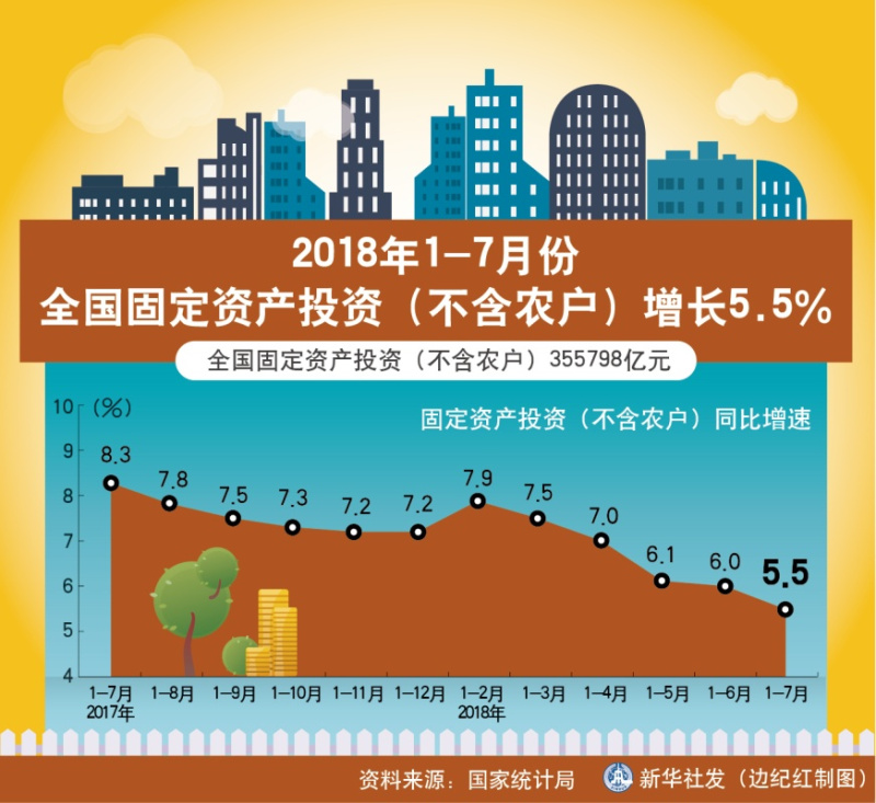 图表:2018年1-7月份全国固定资产投资(不含农户)增长5.5%