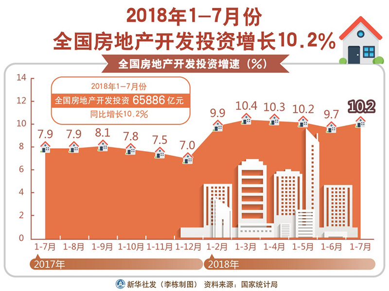 表:2018年1-7月份全国房地产开发投资增长10.2%