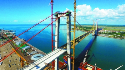 图为莫桑比克马普托跨海大桥。马普托跨海大桥及其连接线工程是由中国路桥公司承建的中国在莫桑比克最大基建项目。这座总长3公里多的跨海大桥建成后,将以680米长的主跨,成为非洲主跨径最大的悬索桥,并极大便利马普托和对岸卡腾贝之间的交通。新华社发