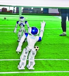 厦门大学大学生创新创业实践基地,大学生团队演示他们研发的足球机器人。孙自法 摄 光明图片/视觉中国