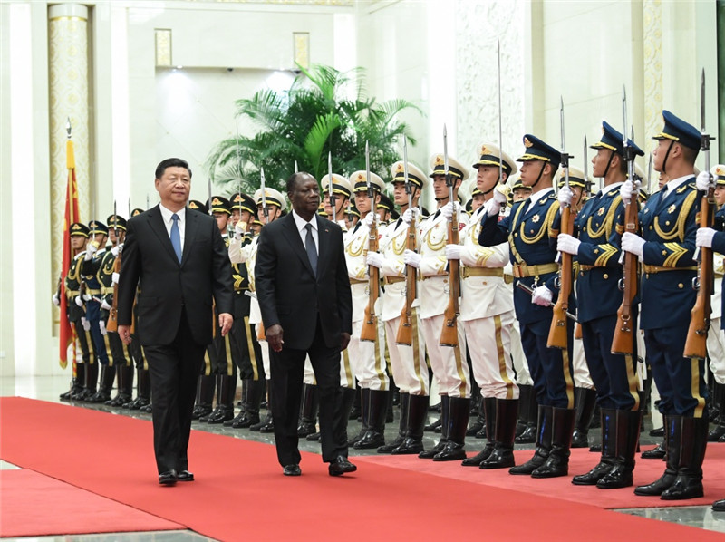 8月30日,国家主席习近平在北京人民大会堂同科特迪瓦总统瓦塔拉举行会谈。这是会谈前,习近平在人民大会堂北大厅为瓦塔拉举行欢迎仪式。新华社记者 申宏 摄