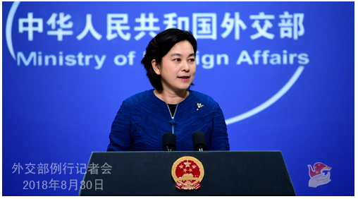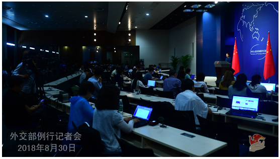 2018年8月30日外交部发言人华春莹主持例行记者会