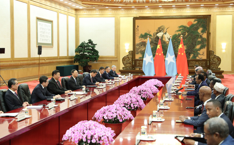 8月31日,国家主席习近平在北京人民大会堂会见索马里总统穆罕默德。新华社记者 丁林 摄