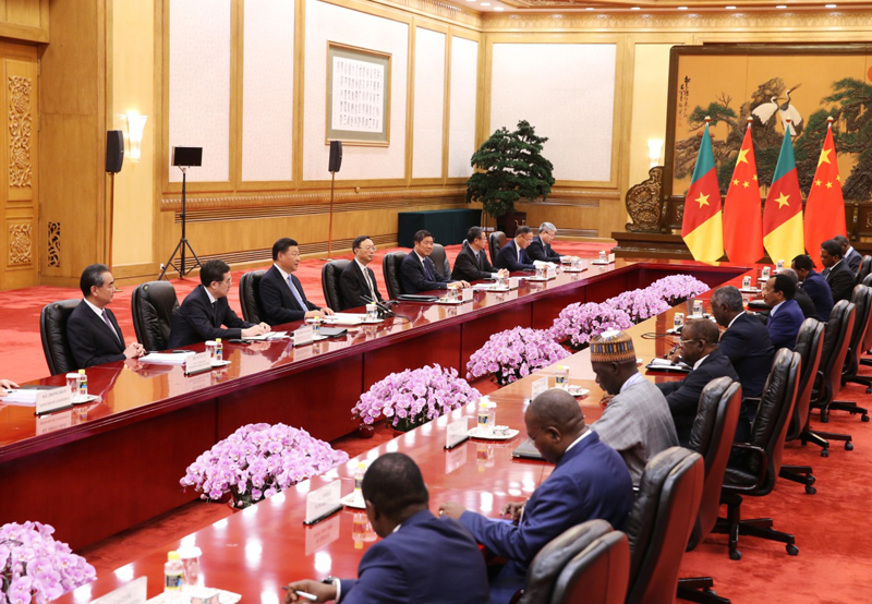 8月31日,国家主席习近平在北京人民大会堂会见喀麦隆总统比亚。新华社记者 姚大伟 摄