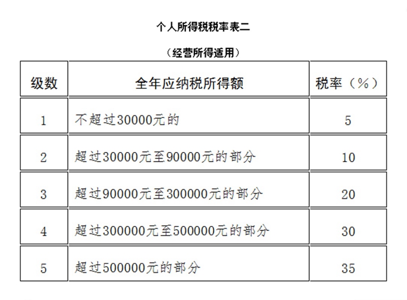 “(二)经营所得,适用百分之五至百分之三十五的超额累进税率(税率表附后);
