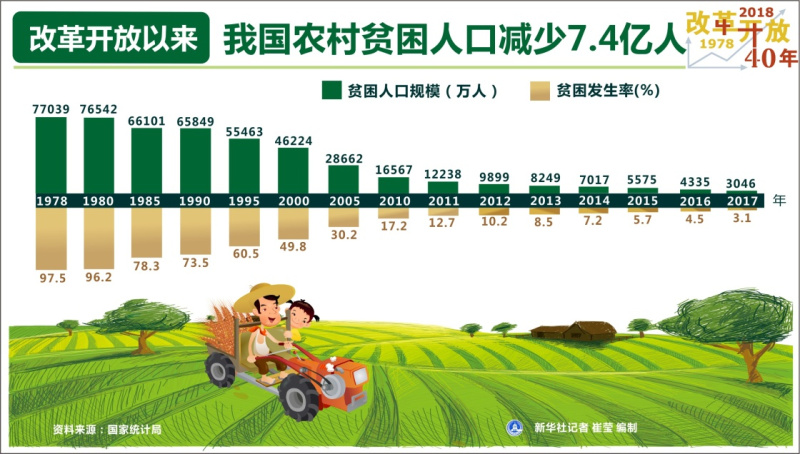 图表:改革开放以来我国农村贫困人口减少7.4亿人