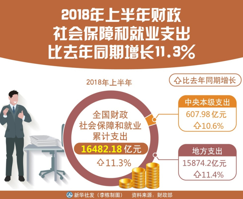 图表:2018年上半年财政社会保障和就业支出比去年同期增长11.3%