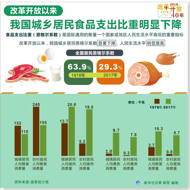 图表:改革开放以来我国城乡居民食品支出比重明显下降