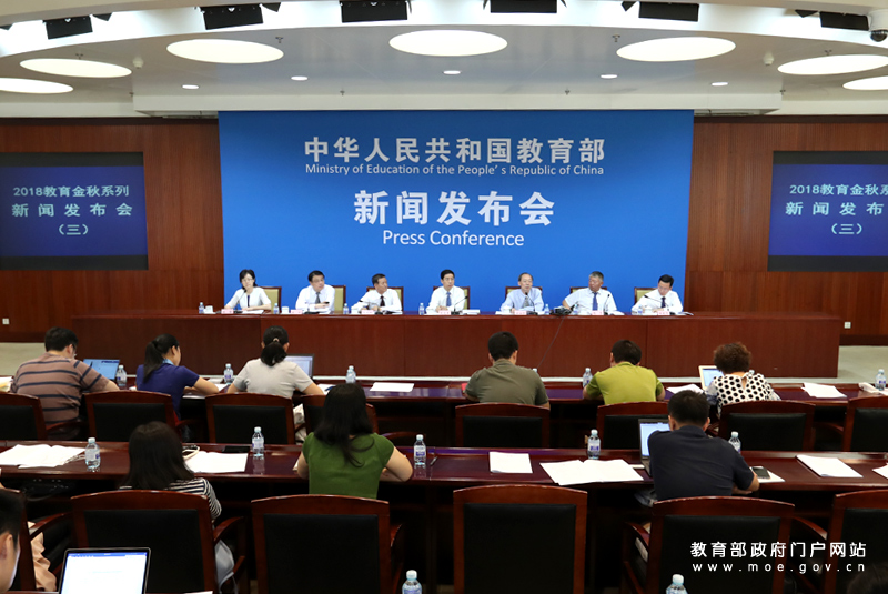 教育部召开新闻发布会介绍2018年秋季开学前全国学生资助工作有关情况。中国教育报记者 张劲松 摄