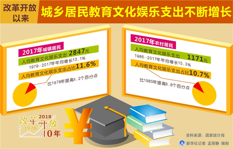 图表:改革开放以来城乡居民教育文化娱乐支出不断增长