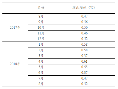 根据季节调整模型自动修正结果,对2017年8月至2018年7月份规模以上工业增加值环比增速进行修订。修订结果及2018年8月份环比数据如下:
