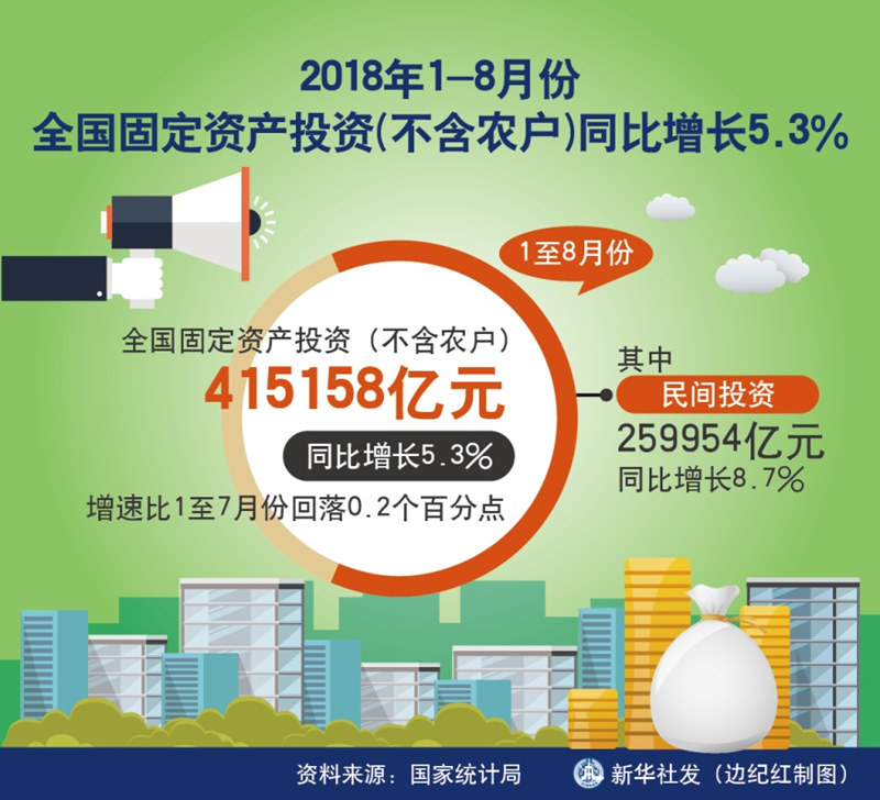 图表:2018年1-8月份全国固定资产投资(不含农户)同比增长5.3%
