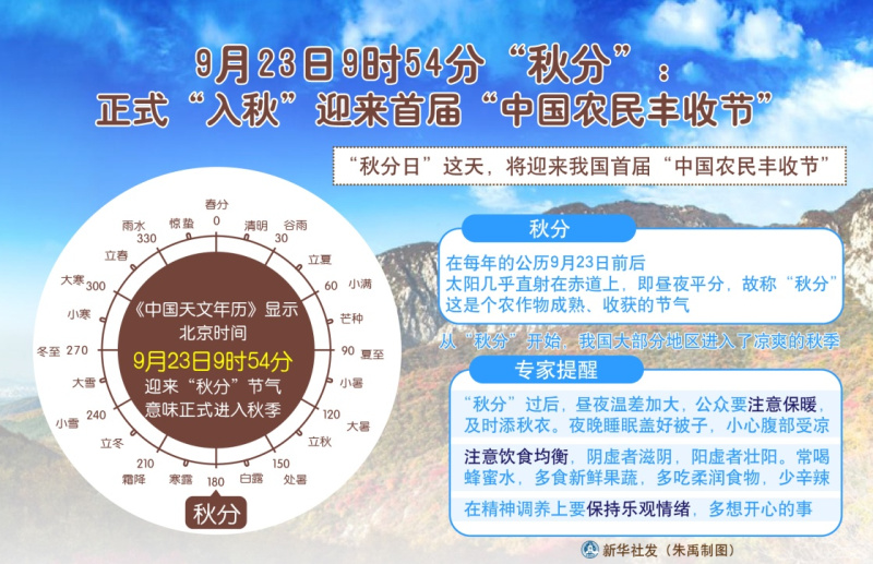 图表:9月23日9时54分“秋分”:正式“入秋”迎来首届“中国农民丰收节”