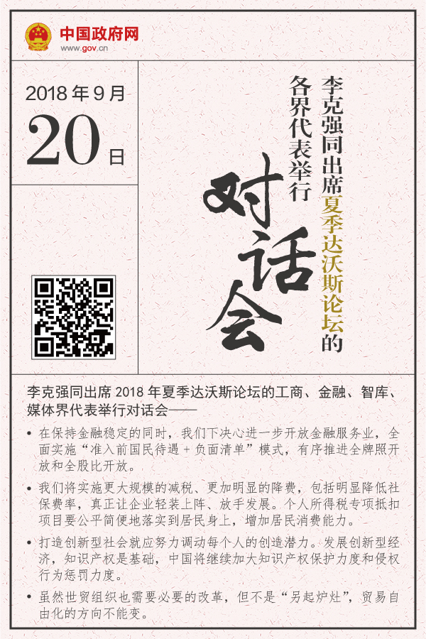日历 | 李克强总理同出席夏季达沃斯论坛的各界代表举行对话会