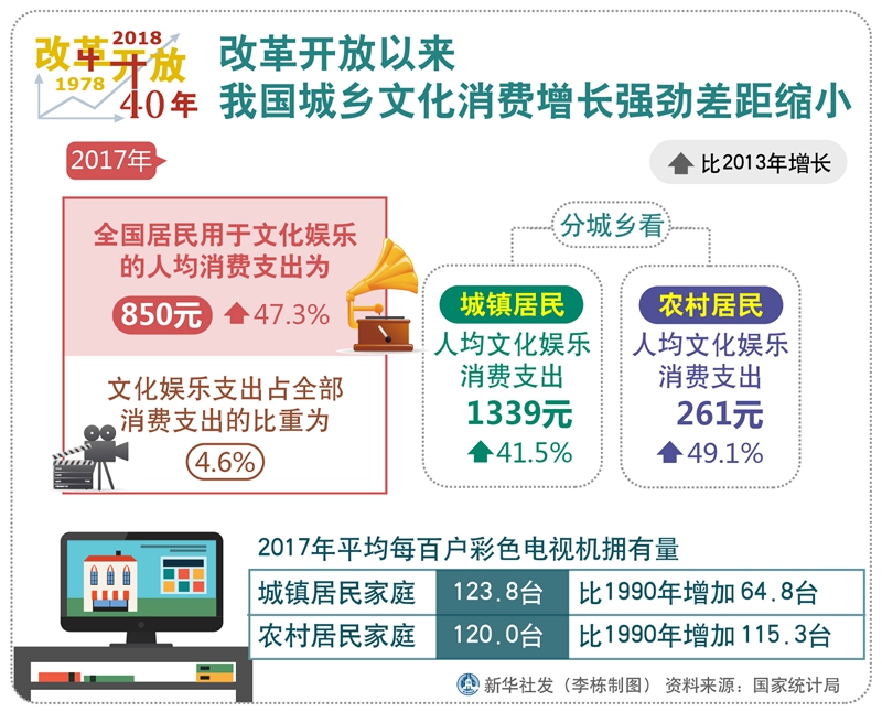 图表:改革开放以来我国城乡文化消费增长强劲差距缩小