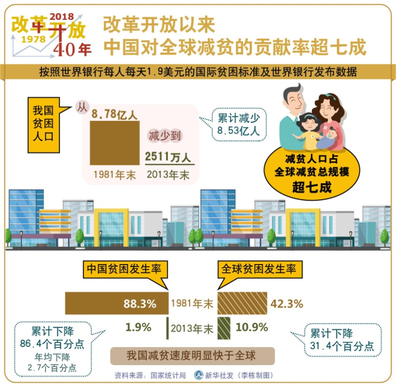 图表:改革开放以来中国对全球减贫的贡献率超七成