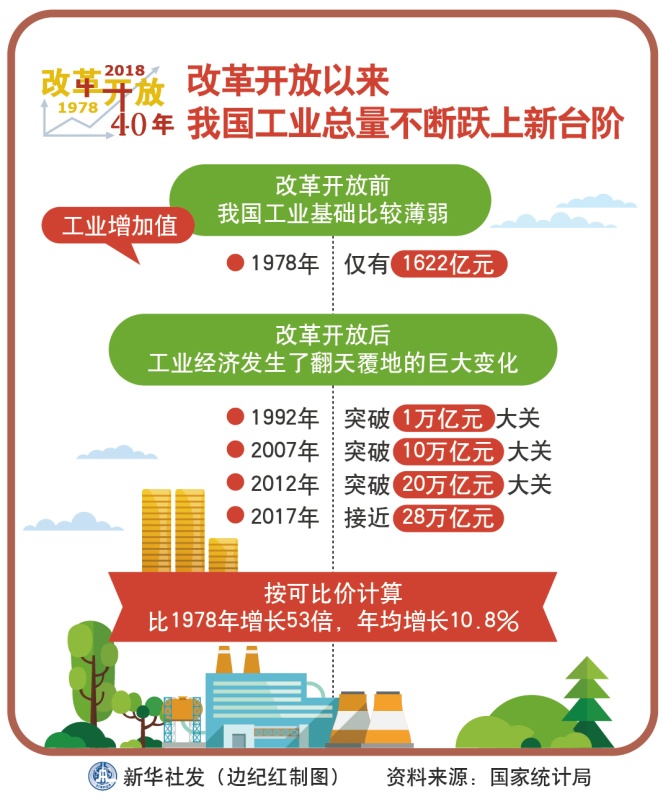 图表:改革开放以来我国工业总量不断跃上新台阶