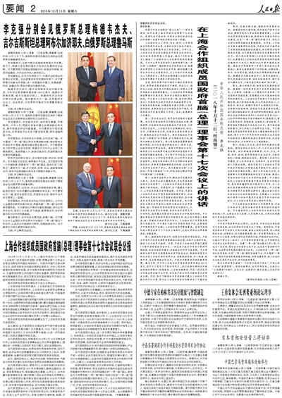 李克强在上海合作组织成员国政府首脑(总理)理事会第十七次会议上的讲话