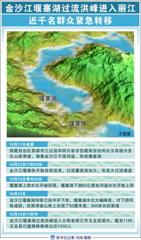 图表:金沙江堰塞湖过流洪峰进入丽江 近千名群众紧急转移