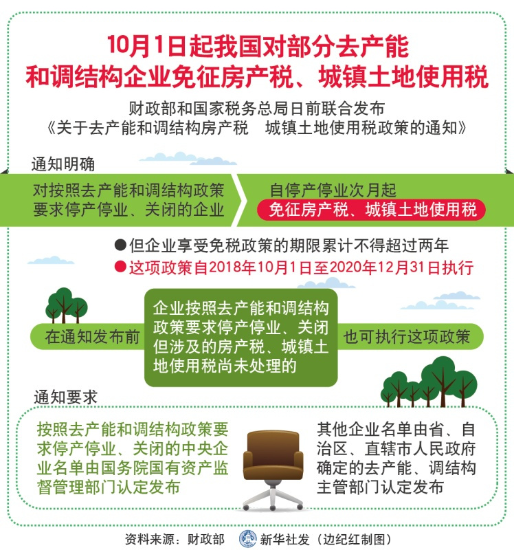 图表:10月1日起我国对部分去产能和调结构企业免征房产税、城镇土地使用税