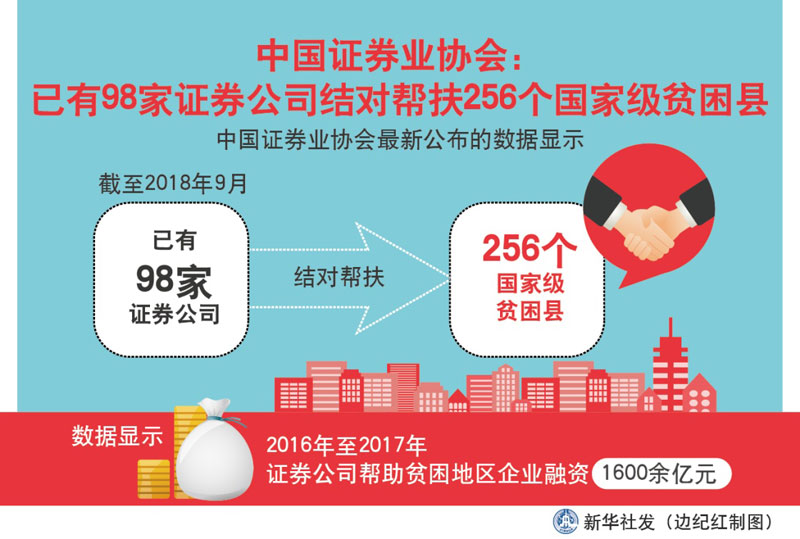 图表:中国证券业协会:已有98家证券公司结对帮扶256个国家级贫困县