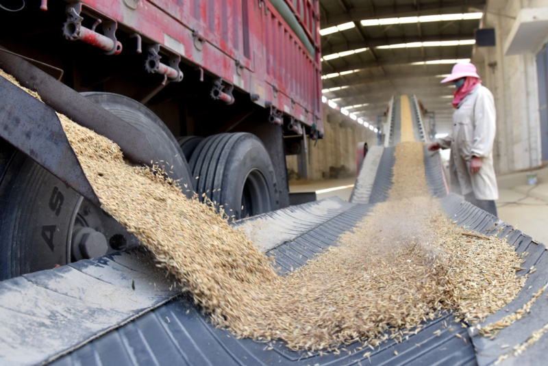 日前,安徽省巢湖市正式启动秋粮收购工作,当地粮食企业积极腾仓纳粮,并对水稻收购品种、价格、质量标准严格把关,做好秋粮收购工作。