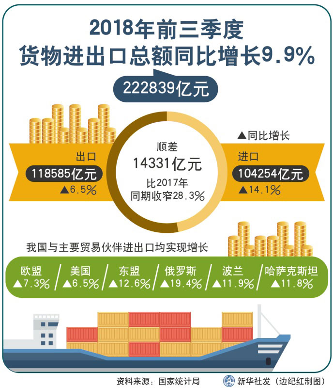 图表:2018年前三季度 货物进出口总额同比增长9.9%