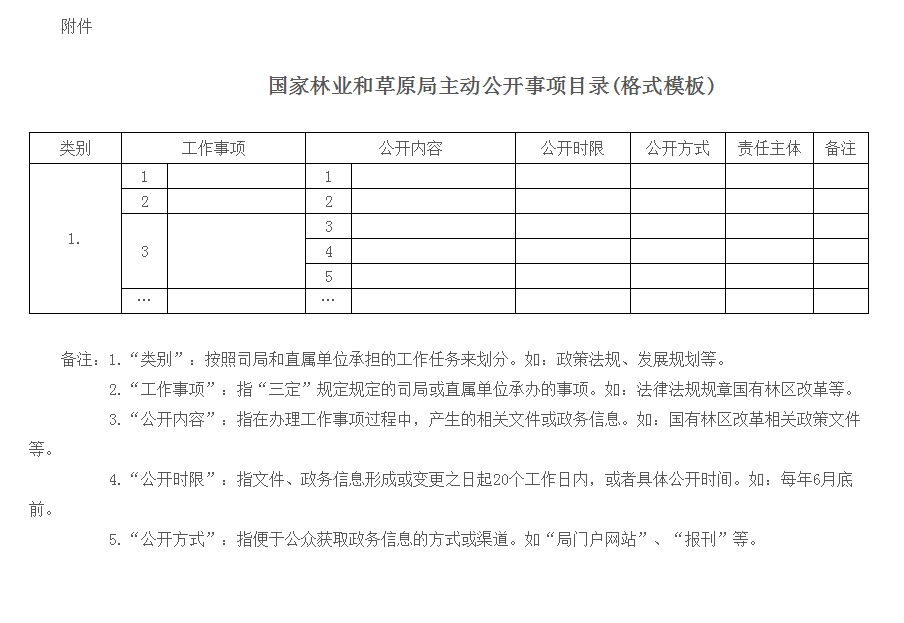 附件:国家林业和草原局主动公开事项目录(格式模板)