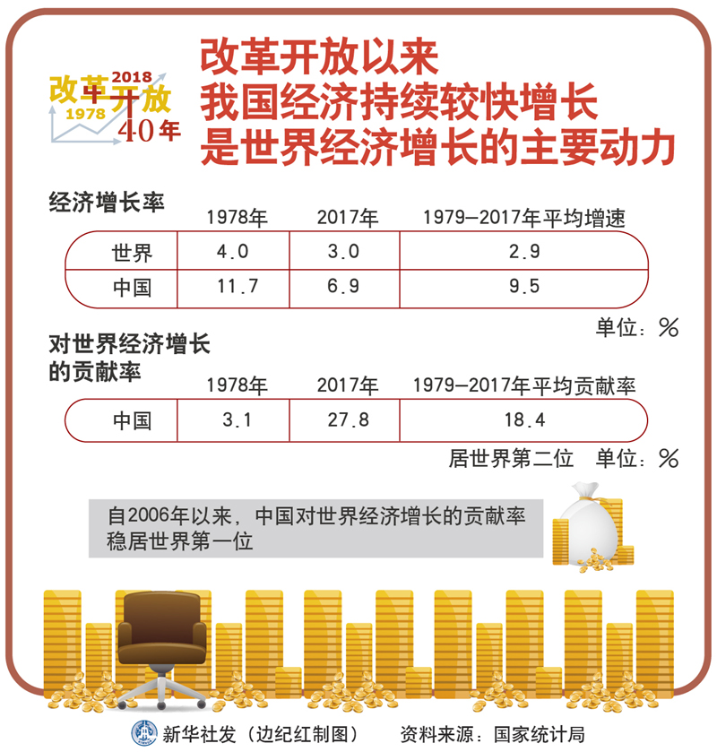 图表:改革开放以来我国经济持续较快增长是世界经济增长的主要动力