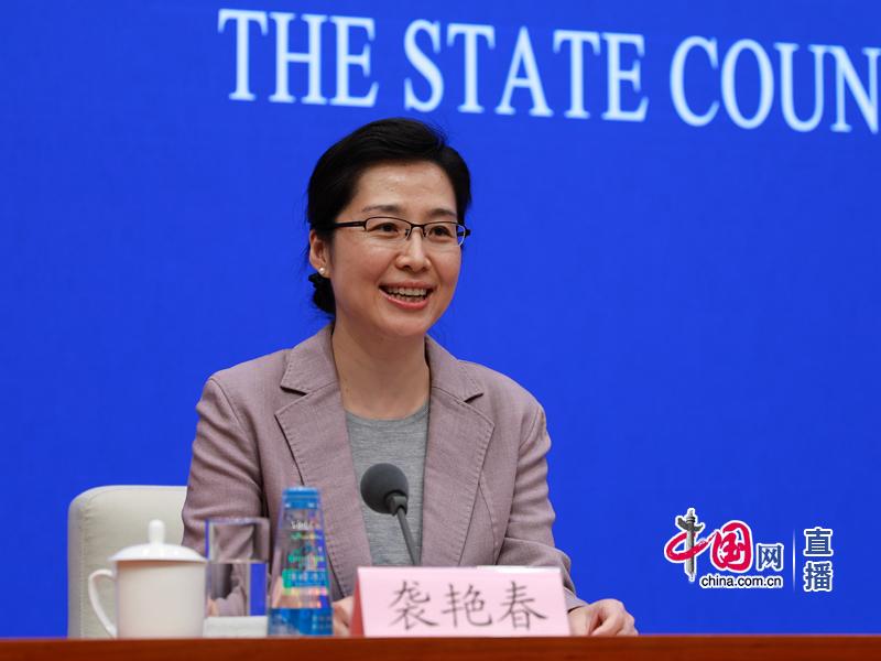 图为国新办新闻局副局长袭艳春主持发布会。中国网 宗超 摄