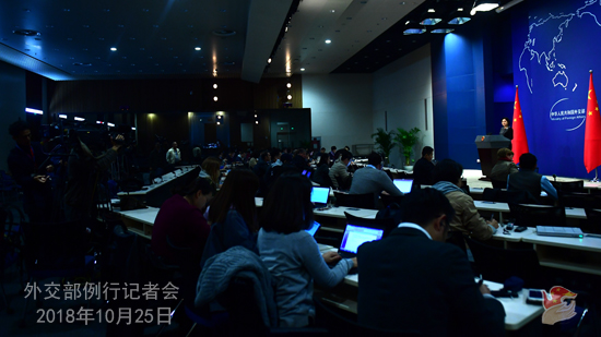 2018年10月25日外交部发言人华春莹主持例行记者会