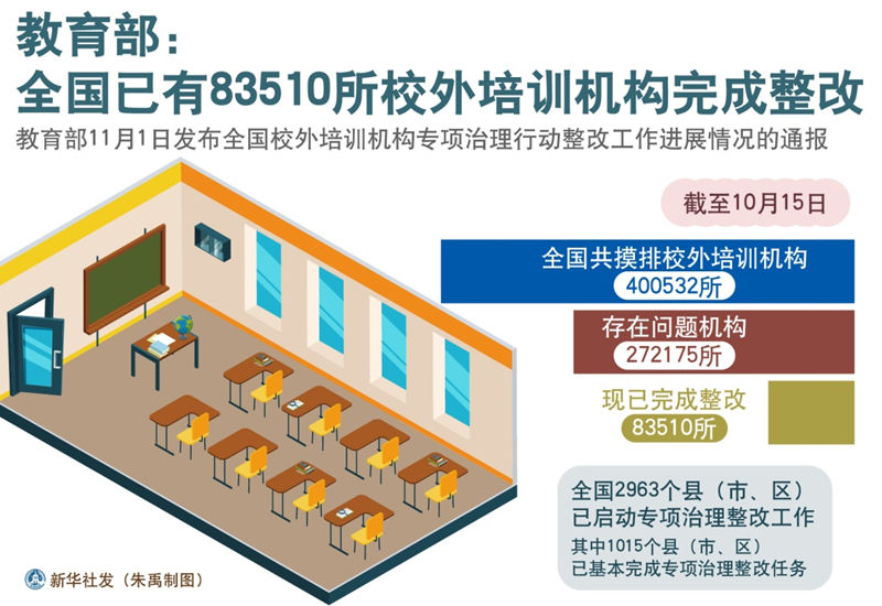 图表:教育部:全国已有83510所校外培训机构完成整改