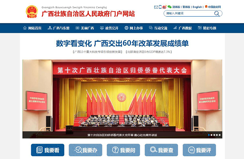 新版广西政府门户网站上线 “五大板块”简洁易用