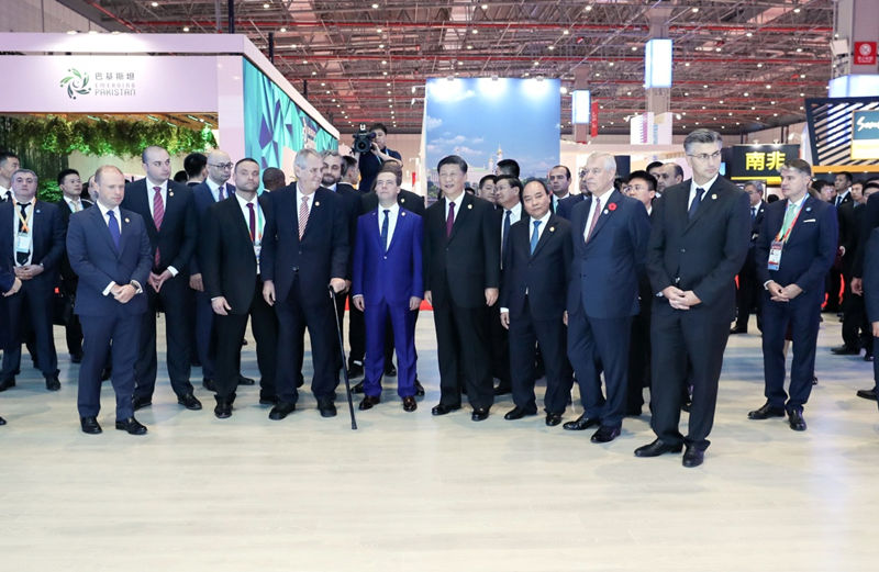 习近平同出席首届中国国际进口博览会的外国领导人共同巡馆